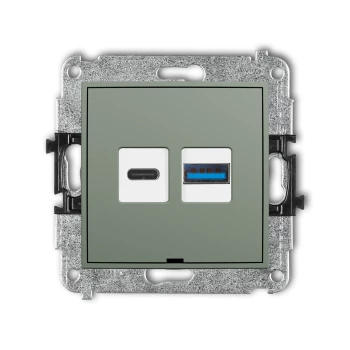 MINI Mechanizm ładowarki USB podwójnej USB C + USB A, 20W max., bez pola opisowego szałwiowy 61MCUSBBO-8