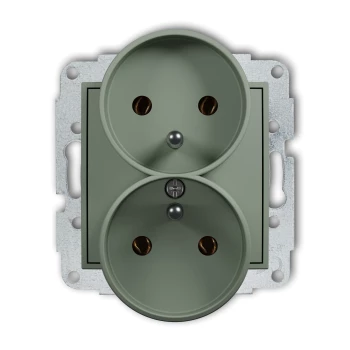 MINI Mechanizm gniazda podwójnego do ramki z uziemieniem 2x(2P+Z) (bez przesłon torów prądowych) szałwiowy 61MGPR-2z
