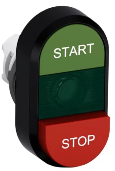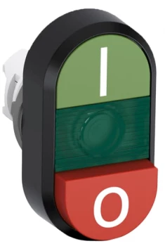 MPD15-11G NAPĘD PRZYCISKU PODŚWIETLANEGO BISTABILNY 2X "START" "STOP" PŁASKI WYPUKŁY ZIELONY/ CZERWO