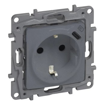 NILOE SELECTION MODUŁ STAL GNIAZDO 1X Z/U PŁASKIE Z PRZESŁONAMI ZACISKI SPRĘŻYNOWE + USB TYP C