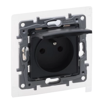NILOE SELECTION MODUŁ ANTRACYT GNIAZDO 1X Z/U Z PRZESŁONAMI Z KLAPKĄ IP44 ZACISKI SPRĘŻYNOWE 16A 250