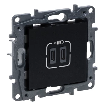 NILOE STEP MODUŁ CZARNY GNIAZDO ŁADOWARKA 2X USB TYP C 3A 5V 15W ZACISKI ŚRUBOWE