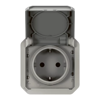 NOWE PLEXO 55 Gniazdo Schuko 2P+Z zaciski auto komplet natynkowy 16A - 250V AC szare 069730L