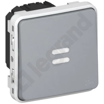 PLEXO55 MECHANIZM SZARY ŁĄCZNIK UNIWERSALNY 2X PODŚWIETLANY IP55 ZACISKI SPRĘŻYNOWE 10AX 250V