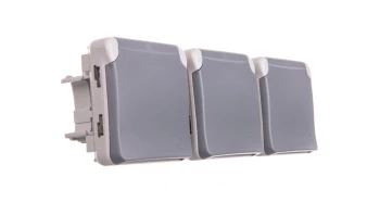 PLEXO55 MECHANIZM SZARY GNIAZDO 3X Z/U Z KLAPKĄ IP55 IK07 POZIOME ZACISKI SPRĘŻYNOWE 16A 250V