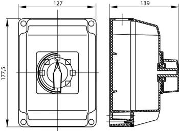 RSI-3125\OBPZC ROZŁĄCZNIK IZOL.3 BIEGUNOWY 125A W OBUDOWIE Z POLIWĘGLANU Z POKRĘTŁEM Ż/C