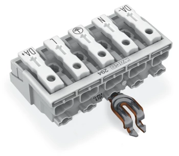 Złączka zasilająca 5-biegunowa ze stopkąmi z stykiem PE 294-5475 /250szt./