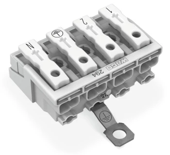 ZŁĄCZKA ZASILAJĄCA ZE ŚRUBOWYM STYKIEM PE ZE STOPKAMI ZATRZASKOWYMI, BIAŁY