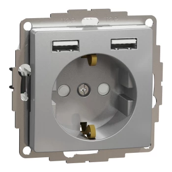 Gniazdo zasilające Schuko + podw gniazdo ład USB typ A 2,4A, srebrne alum,Sedna Design i Elements SDD113052