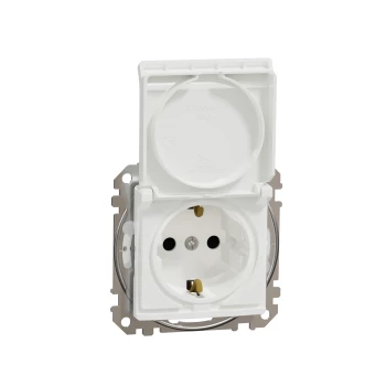 Gniazdo zasilające schuko z przesłonami torów prądowych IP44, białe, Sedna Design i Elements SDD211023