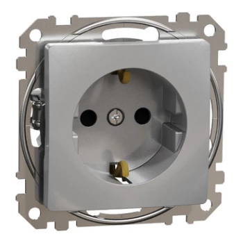 Gniazdo zasilające schuko z przesłonami torów prądowych, srebrne alum., Sedna Design i Elements SDD113021