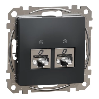 Gniazdo komputerowe podwójne RJ45 kat. 5e STP, czarny antracyt, Sedna Design i Elements SDD114452S