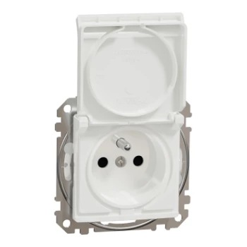 Gniazdo zasilające 2P+PE z przesłonami torów prądowych IP44, białe, Sedna Design i Elements SDD211013