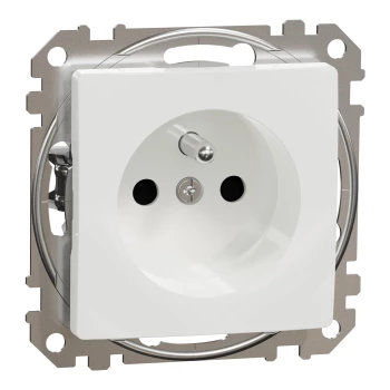 Gniazdo pojedyncze z uziem (2P+PE), z przesłonami torów prądowych, białe, Sedna Design i Elements SDD111011