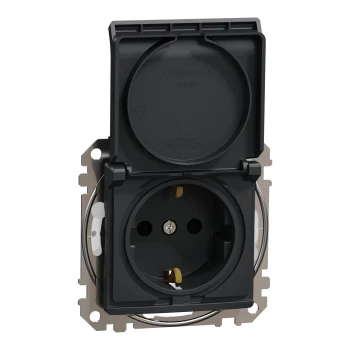 Gniazdo zasilające schuko z przesłonami torów prąd IP44, czarny antracyt, Sedna Design i Elements SDD214023