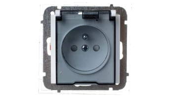 SENTIA MODUŁ SREBRNY POŁYSK GNIAZDO 1X Z/U Z KLAPKĄ DYMNĄ IP44 Z PRZESŁONAMI