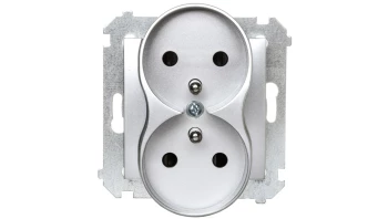 SIMON 54 NATURE MODUŁ SREBRNY MAT GNIAZDO 2X Z/U Z PRZESŁONAMI ZACISKI ŚRUBOWE 16A 250V