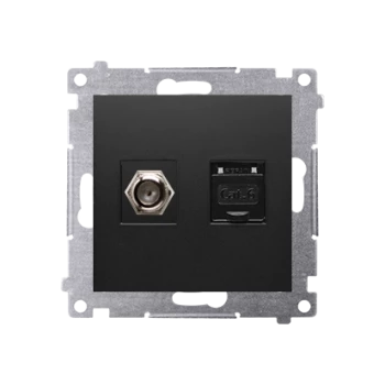 SIMON 54 MODUŁ CZARNY MAT GNIAZDO TV TYP F + GNIAZDO KOMPUTEROWE 1X UAE 8 CAT.6 FTP PŁASKIE