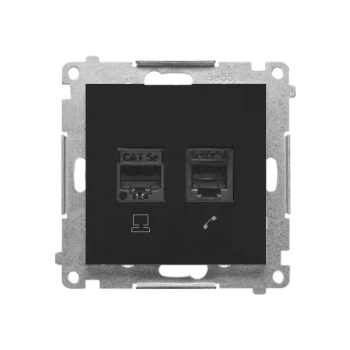 SIMON 55 GNIAZDO KOMPUTEROWE RJ45 KATEGORIA 5E + TELEFONICZNE RJ12 (MODUŁ); CZARNY MAT