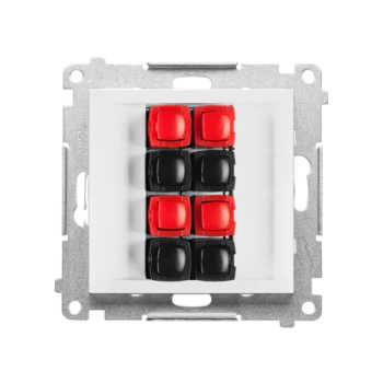 SIMON 55 GNIAZDO GŁOŚNIKOWE 4-KROTNE (MODUŁ). PRZEKRÓJ PRZEWODÓW DLA WEJŚCIA I WYJŚCIA 2,5 MM2; BIAŁ