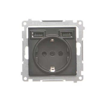 SIMON 55 GNIAZDO SCHUKO ZE ZINTEGROWANĄ ŁADOWARKĄ 2XUSB A (MODUŁ); CZARNY MAT