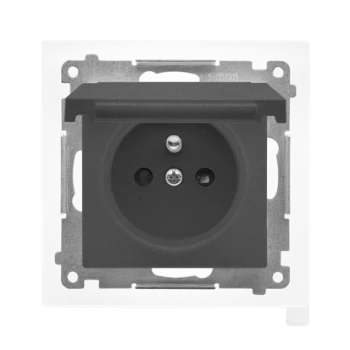 SIMON 55 MODUŁ GRAFITOWY MAT GNIAZDO 1X Z/U Z KLAPKĄ IP44 ZACISKI SPRĘŻYNOWE 16A 250V