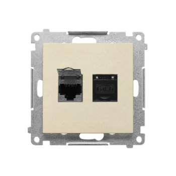 SIMON 55 GNIAZDO KOMPUTEROWE PODWÓJNE RJ45 KATEGORIA 6, Z PRZESŁONĄ PRZECIWKURZOWĄ (MODUŁ); SZAMPAŃS