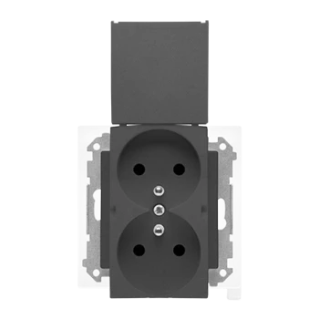 SIMON 55 MODUL GRAFITOWY MAT GNIAZDO WTYCZKOWE PODWÓJNE Z UZIEMIENIEM Z PRZESŁONAMI SZYBKOZŁĄCZA
