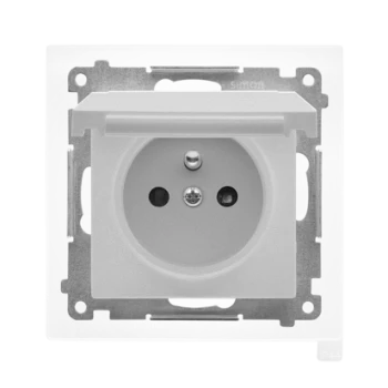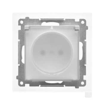 SIMON 55 MODUŁ BIAŁY MAT/ TRANSPARENTNE GNIAZDO 1X Z/U Z KLAPKĄ IP44 ZACISKI SPRĘŻYNOWE 16A 250V