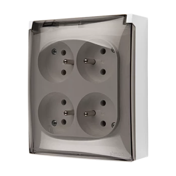Simon Aquaclick Gniazdo IP44, Schuko, 4-krotne, klapka transparentna szary ACGSZ4/16A