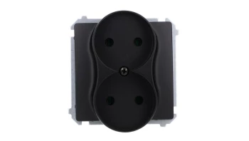 Simon Basic Gniazdo wtyczkowe podwójne bez uziemienia (moduł),16A, 250V, zaciski śrubowe czarny BMG2M.01/49
