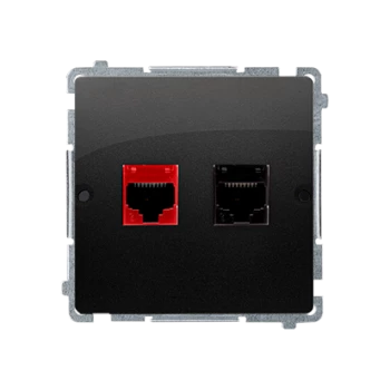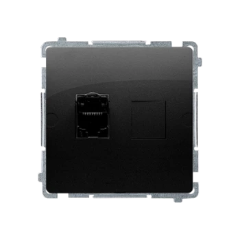 Simon Basic Gniazdo komputerowe RJ45 kat.5e + telefoniczne RJ12 (moduł). Montaż gniazda na wkręty do puszki czarny BM5T.02/49