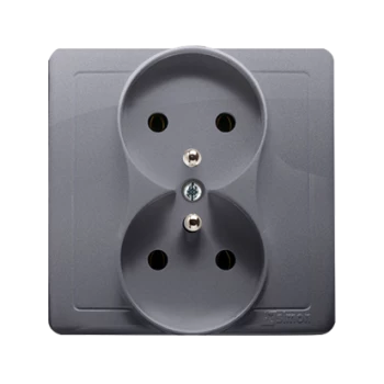 SIMON BASIC SREBRNY MAT GNIAZDO 2X Z/U ZACISKI ŚRUBOWE 16A 250V