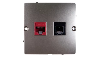 SIMON BASIC MODUŁ INOX GNIAZDO TELEINFORMATYCZNE 1X UAE 4, 1X UAE 8 CAT.5E UTP PŁASKIE