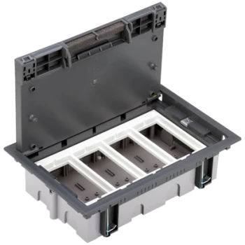 CONNECT PUSZKA PODŁOGOWA 8X K45 LUB 4X SIMON500, Z POKRYWĄ 12MM Z ZAMKIEM; SZARY