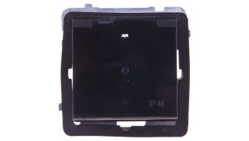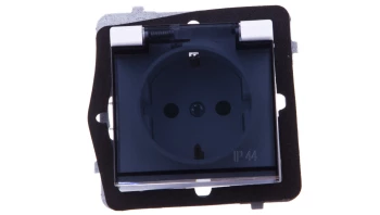 SONATA MODUŁ CZARNY METALIK GNIAZDO 1X SCHUKO Z KLAPKĄ DYMNĄ IP44 Z PRZESŁONAMI ZACISKI ŚRUBOWE 16A