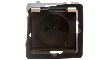 SONATA MODUŁ CZARNY METALIK GNIAZDO 1X Z/U Z KLAPKĄ DYMNĄ IP44 Z PRZESŁONAMI ZACISKI ŚRUBOWE 16A 250