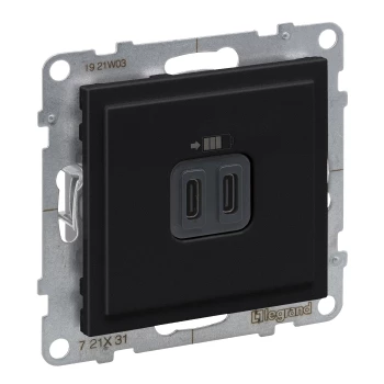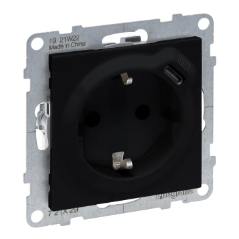 SUNO 2 MODUŁ CZARNY GNIAZDO 1X SCHUKO+ USB TYP C ZACISKI ŚRUBOWE 16A 250V