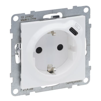 SUNO 2 MODUŁ BIAŁY GNIAZDO 1X SCHUKO+ USB TYP C ZACISKI ŚRUBOWE 16A 250V