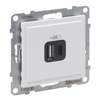 SUNO 2 MODUŁ BIAŁY GNIAZDO 1X Z/U+ GNIAZDO USB TYP C ZACISKI SPRĘŻYNOWE 16A 250V