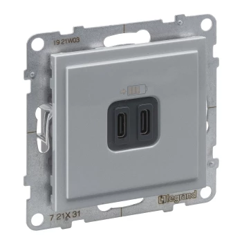 SUNO 2 MODUŁ ALUMINIUM GNIAZDO 1X Z/U+ GNIAZDO USB TYP C ZACISKI SPRĘŻYNOWE 16A 250V