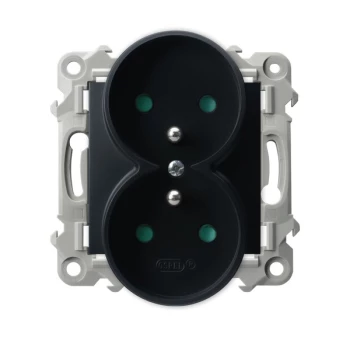 SZAFIR MODUŁ CZARNY METALIK GNIAZDO 2X Z/U Z PRZESŁONAMI TORÓW ZACISKI ŚRUBOWE 16A 250V