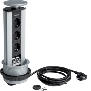 Moduł zasilający teleskopowy stołowy 3 gniazda 230V 2P+Z 2xRJ45 kat.6 z przesłonami aluminium G7345LAN