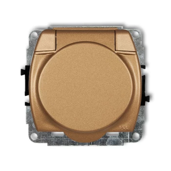 TREND Gniazdo bryzgoszczelne z/u SCHUKO (klapka dymna) złoty metalik 8GPB-1sdp
