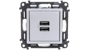 VALENA LIFE MODUŁ ALUMINIUM ŁADOWARKA Z GNIAZDEM 2X USB 5V 1500MA 230V